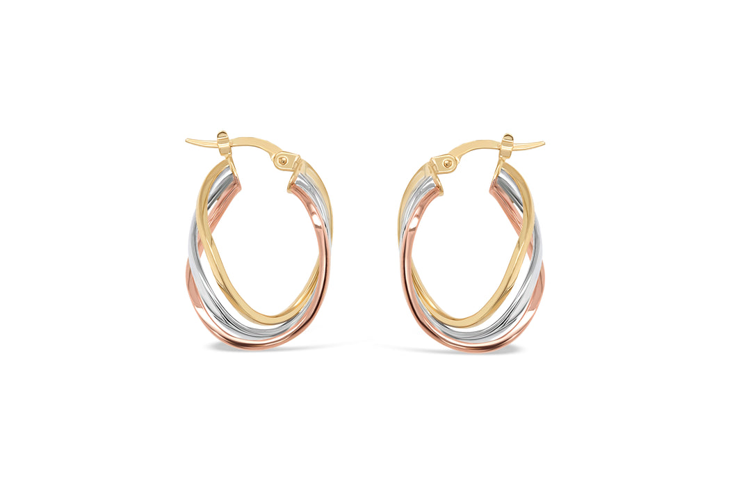 5.9mm 10kt Tri-Gold Hoop Earrings