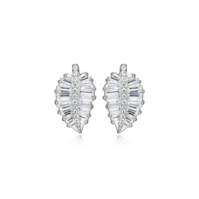 These sterling silver earrings feature an elegant leaf-inspired design, accented with baguette-cut and round cubic zirconia (CZ) for a dazzling effect. The intricate detailing and polished finish make them perfect for adding a touch of nature-inspired glamour to any outfit. Ideal for special occasions or as a statement piece in your collection.