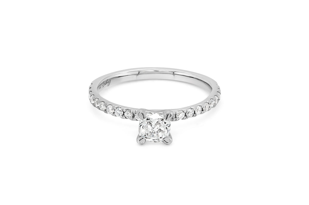 Center: .50CT Lab Grown Diamond Band: 0.25CT Lab Grown Diamonds T.DW.= .75CT Lab Grown Diamonds |