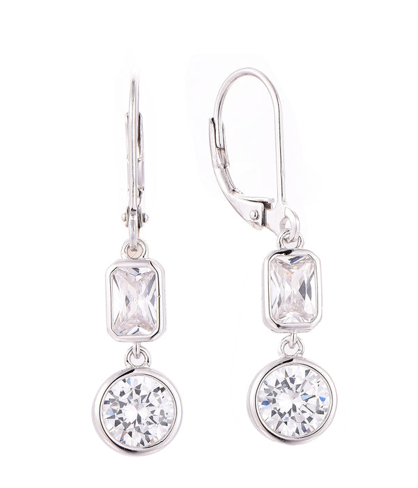 Casablanca Sterling Silver Double CZ Drop Earrings