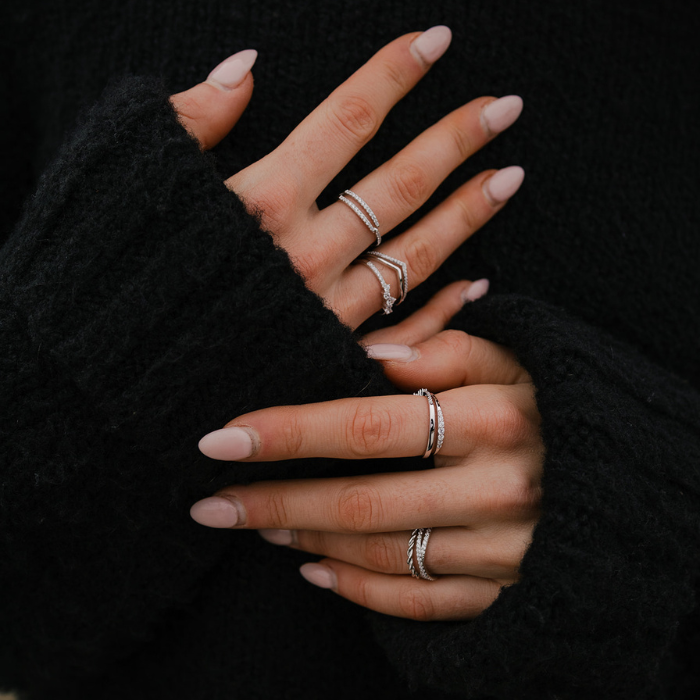 Introducing our Twist Family Ring, a one-of-a-kind piece to symbolize your family's bond. Crafted in sterling silver, white gold, or yellow gold, p...