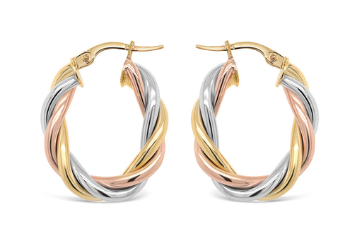 3.9mm 10kt Tri-Tone Twisted Hoop Earring
