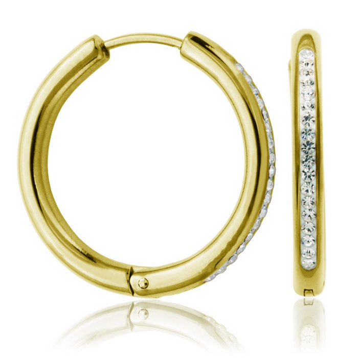 These best-selling Steelx Preciosa CZ hoops offer a chic and sophisticated look with stainless steel and optional rose gold or yellow gold plating. Sparkling cubic zirconia accents add a touch of sparkle, perfect for dressing up any outfit.