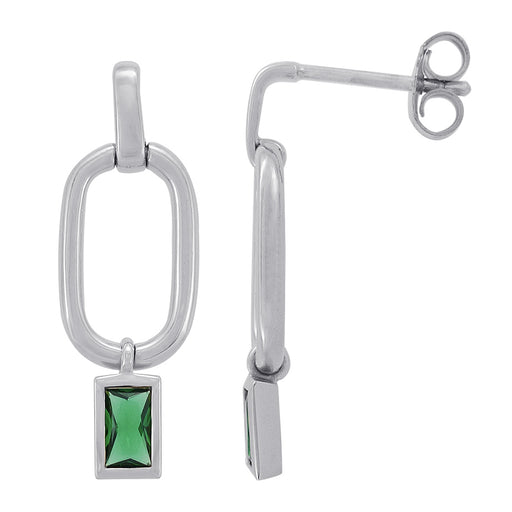 Casablanca Sterling Silver Green CZ Drop Earrings