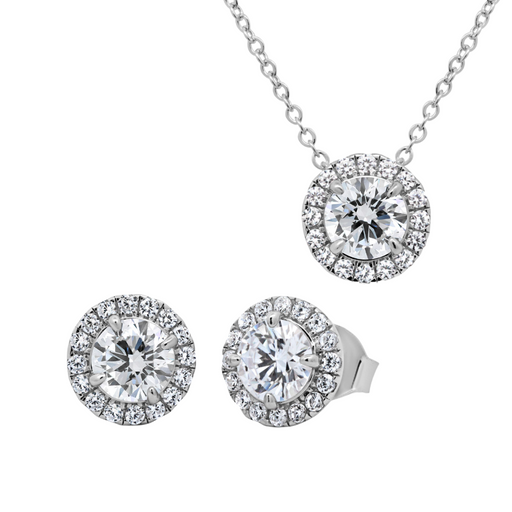 Casablanca Sterling Silver Halo CZ Necklace & Earring Set