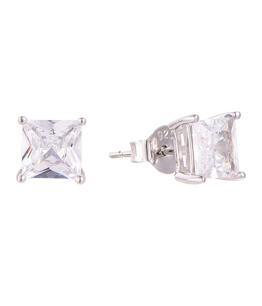 4MM Casablanca Silver Princess Cut CZ Earrings
