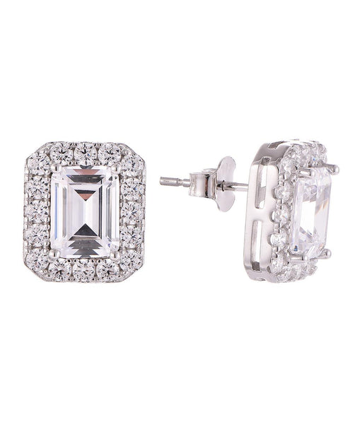 Casablanca Sterling Silver Square Hoop CZ Earrings