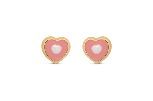14KT Yellow Gold Children's Pink Heart Stud Earrings