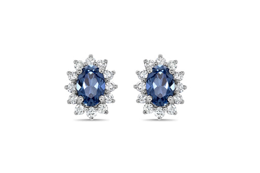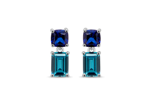 Lab Grown Halo Blue Sapphire & Blue Topaz Earrings