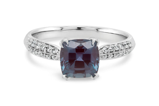 Lab Grown Alexandrite Cushion Gemstone White Gold Fashion Ring