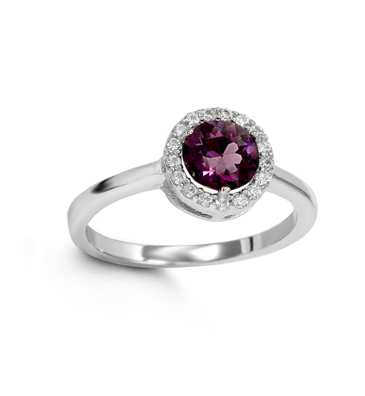 Casablanca Round Halo Sterling Silver Birthstone Ring