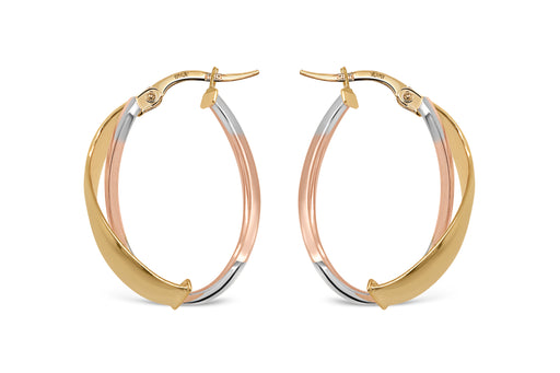 Two-Tone White and Yellow Gold Small Crossover Half Hoop Earrings