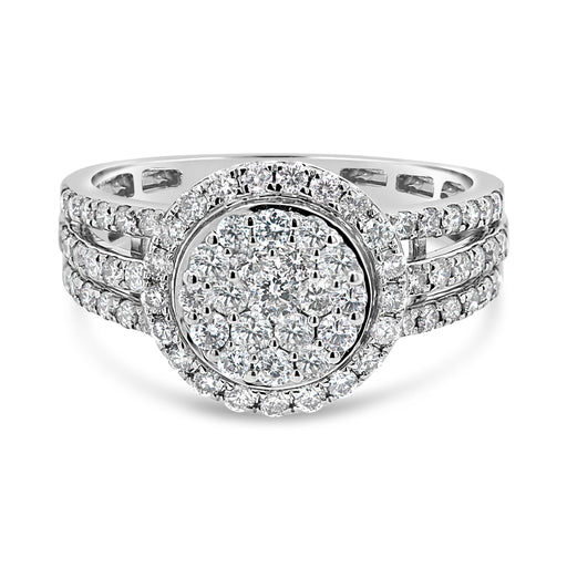 1.00CTW Round Brilliant Cluster Engagement Ring: White Gold