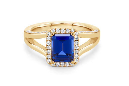 Original price $2,999.97Current price $2,499.99| /Material 14KT Yellow Gold Diamond .13CT TDW Diamonds 2x Emerald Cut, 6x Round Brilliant Gemstone 5x7 Montana Sapphire Style # 52024