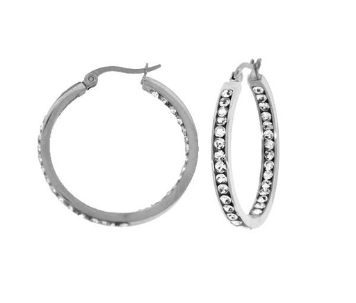 • 40mm Italgem Stainless Steel CZ Hoop Earrings: Silver