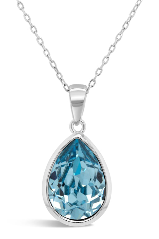 Casablanca Sterling Silver Pear Crystal Drop Necklace: Aqua