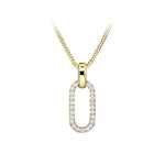 Elevate your look with this Casablanca Pave Oval Drop Necklace. Its 10KT Yellow Gold pendant is adorned with a halo of dazzling white micro-pave diamonds, creating a stunning statement piece. This eye-catching necklace will add a sophisticated sparkle to your look.