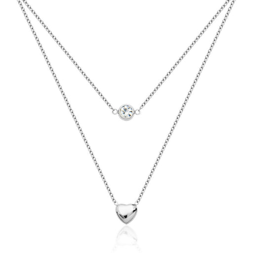 $65.00| /This double stainless steel necklace is designed to make an impact. Featuring a heart pendant with a brilliantly dazzling crystal center and a laye...