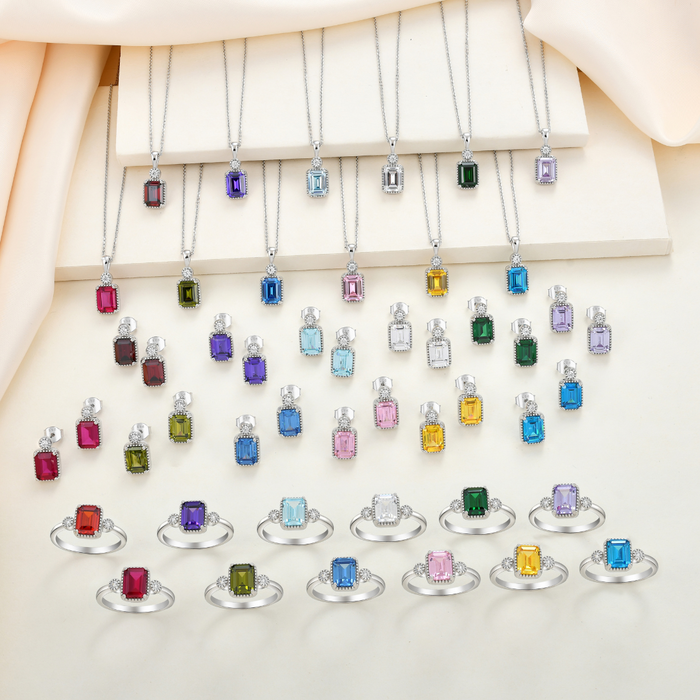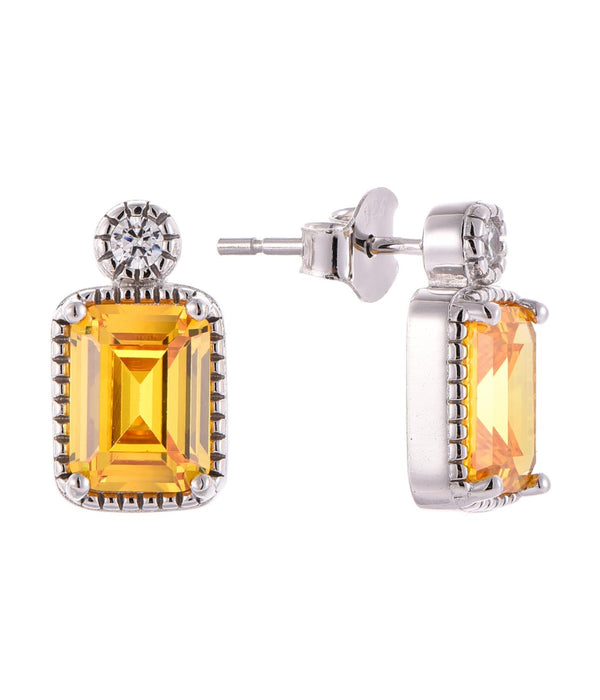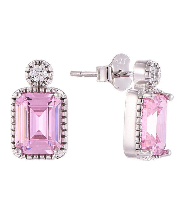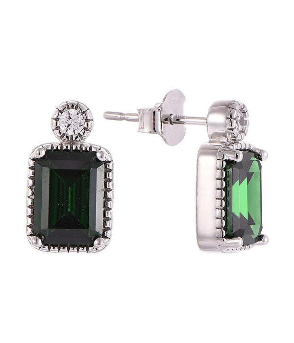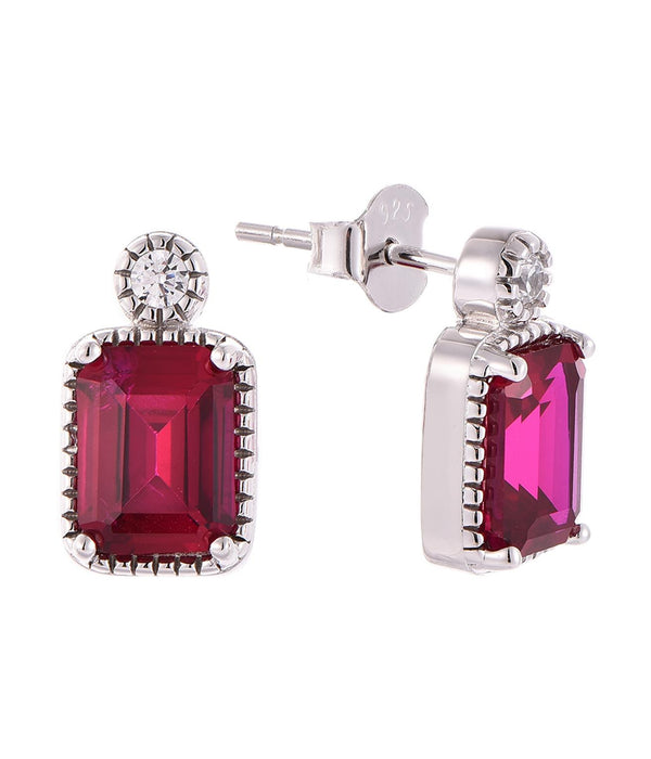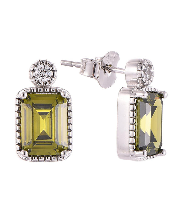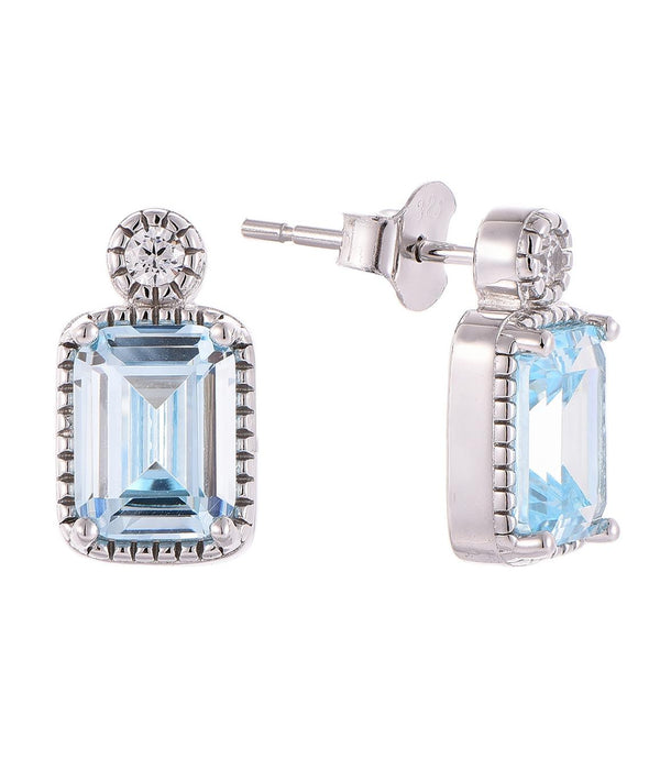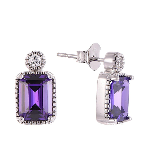 Casablanca Sterling Silver Emerald Cut Birthstone Earrings