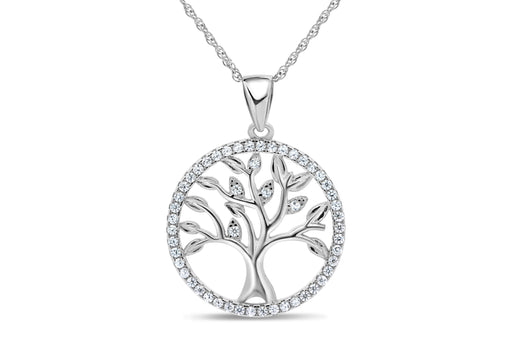 $169.97| /This elegant family tree pendant necklace is crafted from sterling silver, with a circle design that encircles the tree. The branches are decorated...