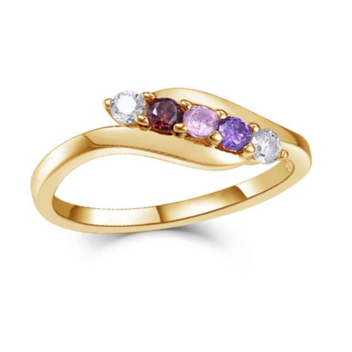Curve Family Ring 3-5 Birthstones, Available in Sterling Silver, White Gold or Yellow Gold