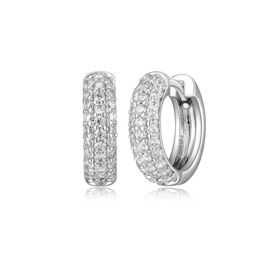 Sterling Silver CZ Pave Hoop Earrings
