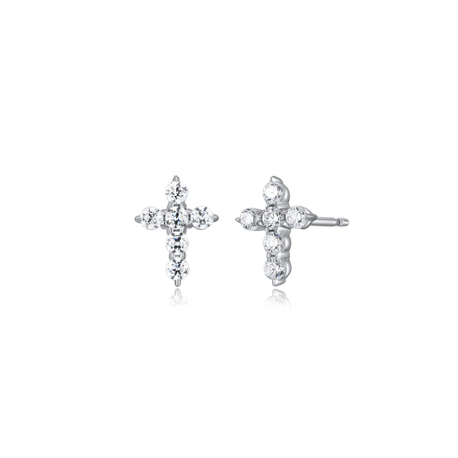 Casablanca Sterling Silver CZ Pointed Cross Stud Earrings