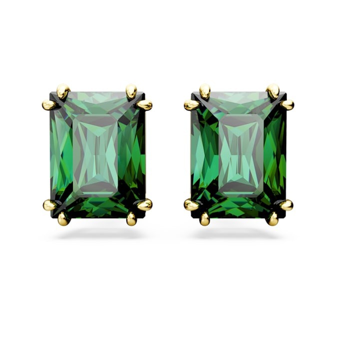 Experience the elegance and sophistication of these Swarovski Matrix Green Rectangle Stud Earrings. Crafted with precision and style, these simple yet mesmerizing studs feature shimmering green rectangular Swarovski Zirconia in a refined gold-tone plated double-prong setting. Add a head-turning pop of green to any outfit with these faceted earrings.