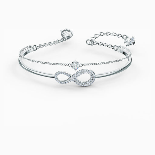 Show your endless devotion with the Swarovski Infinity Bracelet. Plated with rhodium, this elegant bracelet features a heart and the symbol for inf...