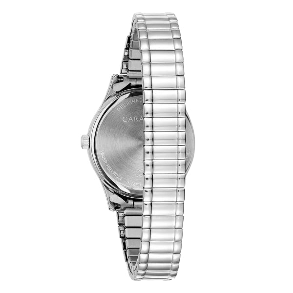 This Caravelle Ladies Watch offers a timeless design in a wear-with-everything silver-tone style. An easy-to-read 24-hour numerals and three-hand date feature provide versatility and convenience. Accented by a stainless steel case and comfort-fit expansion band, this classic watch completes any look.